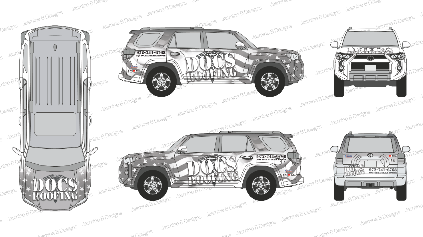 The following are custom designed vehicle wraps for several businesses located in and around the DFW area. Along with these commercial vehicle designs I also had the opportunity to design personal vehicles for clients who wanted a custom touch to their vehicles.